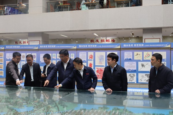结束参观,来宾们来到沙盘模型前。卢校长饶有兴致地介绍了学校上海路校区与前湖校区的建设情况,我校始终重视校园建设,着力为学生打造舒适的学习环境。从上海路校区到前湖校区的空间变迁,不仅见证了学校的发展历程,也承载着对育人环境的持续优化。谈及未来,卢校长还分享了两校区在功能升级、资源整合等方面的规划,让来宾们对学校的校园建设布局有了更全面的了解。